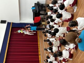 そして今日は七夕の集いを行いました。先生から七夕についてのお話しを聞いたり、七夕のペープサートを見たりしました。子どもたちは興味津々で聞いていました。