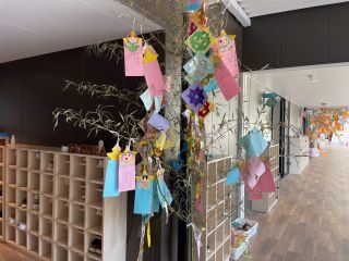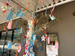 「さっかーせんしゅになれますように」や「あいどるになりたい」など将来の夢や、「きょうりゅうのおもちゃがほしい」「おかしがたくさんほしい」など欲しいもの、「あしがはやくなりたい」「えがじょうずにかけるようになりたい」など頑張りたいことなど、素敵なお願い事がたくさん吊るされた笹となりました。