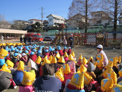 わかば幼稚園では、災害に備えて毎月避難訓練を行っています。