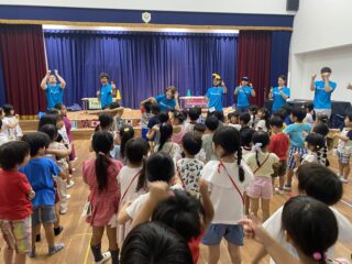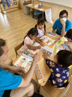 8月3日、4日にヴァンテージ・ジャパンの先生たちによる「サマースクール」が行われました。いつも英語あそびを指導してくれているドリー先生や、ジャック先生以外にも、たくさんの外国人の先生が来てくれ、子どもたちはうれしそうでした。