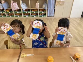 二日目のクラフトはclown(ピエロ)作りを行いました。好きな色に塗り顔を描いて、はさみやのり、折り紙を使って素敵なclownを完成することができました。
