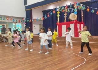 楽しく練習してきたドラえもん音頭は、中学生のお兄さんお姉さんと一緒に元気いっぱい踊ることができました。