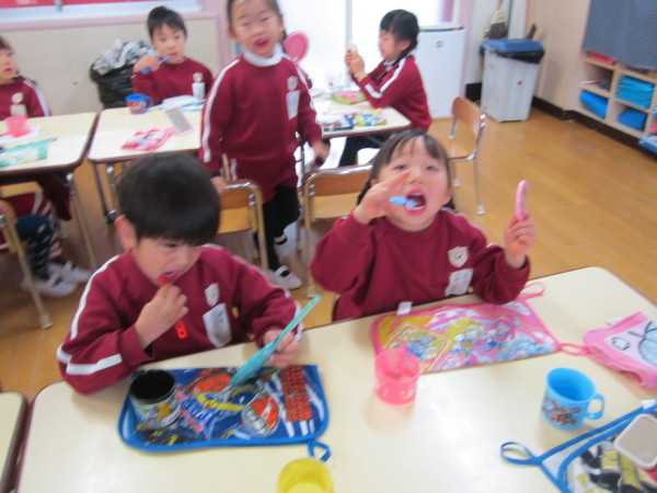 『歯みがきをしっかりやりましょう!』という歯科衛生士さんとのお約束を守って、早速今日の昼食後から丁寧に歯みがきする姿が見られました。