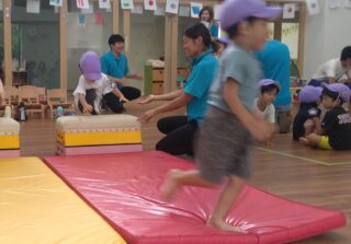 2歳児さんは、1人でマットや跳び箱を超えて走りました。