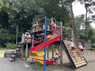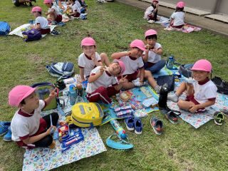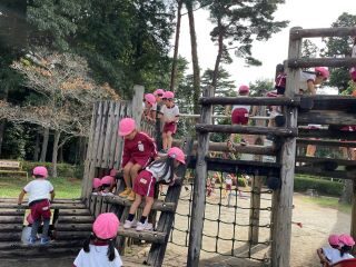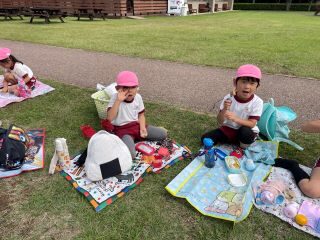 お芋を掘った後は、草笛の丘でお家の人が作ってくれた美味しいお弁当をお腹いっぱい食べました。アスレチックでもたくさん遊んで、大満足の1日となりました。