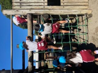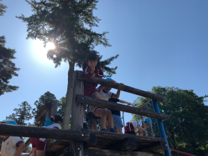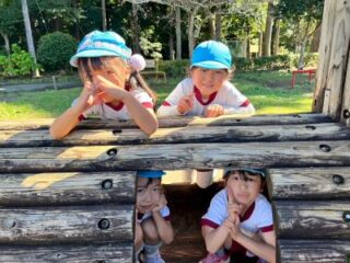 頑張ってお芋を掘った後は、みんなでお弁当を食べました。昼食後は、お友だちと一緒に遊具で遊んだり木の実拾いをしたりして、秋の自然に触れることもできました。