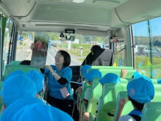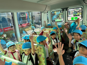 お芋掘り遠足をとても楽しみにしていた子どもたち。バスの中では、「大きいお芋を掘るぞ!」「早くお芋掘りをしたい!」と期待でいっぱいでした。