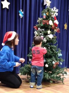 ツリーのオーナメントを運んで飾るお手伝いも張り切ってやってくれました!