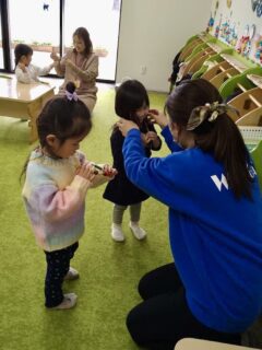 クリスマス当日、みんなクリスマスカラーのお洋服や小物を身に着けて幼稚園に来てくれました。