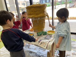 2月はみんなが作った鬼のお面をつけての豆まき、幼稚園がレストランになる作品展など楽しいことがいっぱいです。