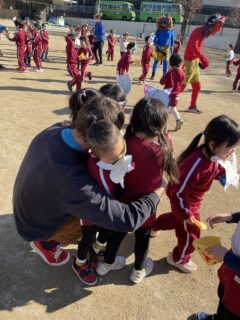 無事に鬼退治することができ、心も身体も強くなったようです。最後は鬼と仲良くみんなで写真撮影をし、楽しい豆まき会となりました。