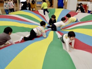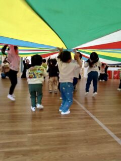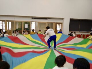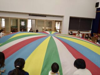 《みんなで力を合わせる》をテーマに、パラバルーンに挑戦しました。