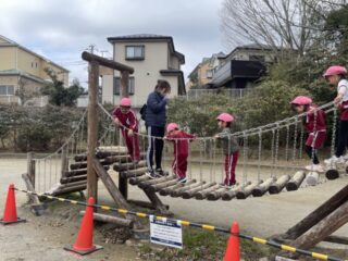 アスレチックでは、吊り橋やぶらんこ、シーソーがありました。みんなで順番を守り、楽しく遊びました!!