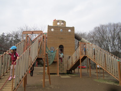 お弁当と、お菓子を食べた後は大きなアスレチックで遊びました。
