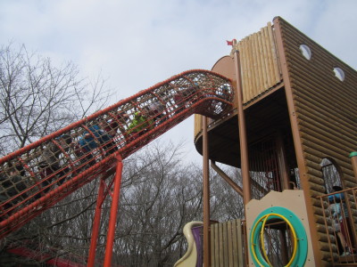 一番人気は、長いローラースライダーでした!何度も滑りに行き、楽しんでいました。少し難しいアスレチックにも進んで挑戦していました。さすが年長組さん!という姿でした。