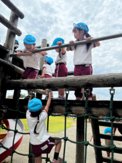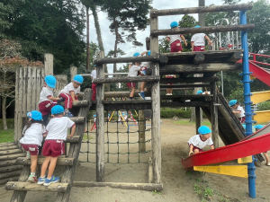 昼食後は、アスレチックで思い切り遊んだり、どんぐりを拾いをしたりと秋の自然にも触れることができました。
