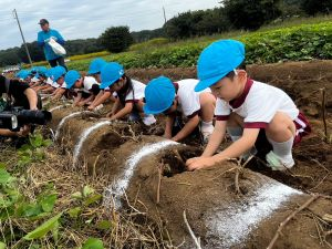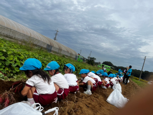 今日は年少組でお芋掘り遠足に行ってきました。子どもたちは朝から張り切っていて、とてもワクワクしていました。