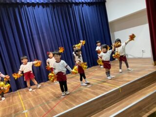 お遊戯会の本番に向け、11月からクラスで力を合わせて練習に取り組んでいます。