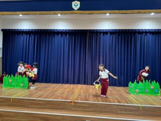 年中組と年長組はお遊戯のほか、劇にも挑戦します。