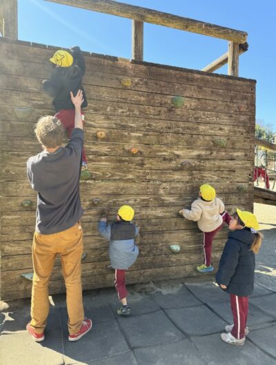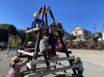 今日は空気が冷たかったですが、途中で上着を脱ぐほど寒さに負けず、たくさん先生やお友だちと遊ぶことができ、「楽しかった!」「また遠足に行きたい!」と大満足の様子でした。年中組での最後の楽しい思い出となりました。