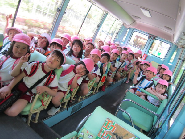 行きのバスの中では、動物にちなんだクイズ大会をしたり、『動物園に行こう』のうたを歌ったりしました。動物園への期待も高まり大盛り上がりで、「どんな動物さんたちにあえるかなぁ。」と、待ちきれないようでした。