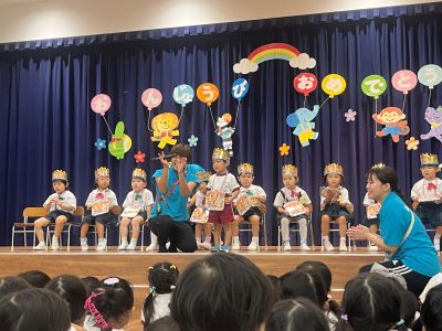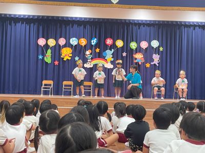 夏季保育今日の子どもたち(日常の記録)2025.08.288月27日(水)、8月28(木)に夏季保育を行いました。久しぶりに元気に登園をして、夏休みの思い出をたくさん話してくれました。 27日は年少・つくし組、28日は年中・年長がお誕生会を行いました。お誕生会では先生クイズや誕生児クイズに大盛り上がりな様子が見られました。 また、わかば祭りで使う食券作りをしたり、ドラえもん音頭の練習をしたりして当日のお祭りに向けて気合十分な姿が見られました。明日のお祭り、先生やお友だちとたくさん楽しみましょうね! カテゴリーごと記事一覧お知らせ活動の記録ふれあい英語今日の子どもたち(日常の記録)園行事・季節の行事幼稚園後のならいごと2歳児教育わかばブログ アーカイブ わかばブログ アーカイブ 月を選択 2026年1月 2025年12月 2025年11月 2025年10月 2025年9月 2025年8月 2025年7月 2025年6月 2025年5月 2025年4月 2025年3月 2025年2月 2025年1月 2024年12月 2024年11月 2024年10月 2024年9月 2024年8月 2024年7月 2024年6月 2024年5月 2024年4月 2024年3月 2024年2月 2024年1月 2023年12月 2023年11月 2023年10月 2023年9月 2023年8月 2023年7月 2023年6月 2023年5月 2023年4月 2023年3月 2023年2月 2023年1月 2022年12月 2022年11月 2022年10月 2022年9月 2022年8月 2022年7月 2022年6月 2022年5月 2022年4月 2022年3月 2022年2月 2022年1月 2021年12月 2021年11月 2021年10月 2021年9月 2021年8月 2021年7月 2021年6月 2021年5月 2021年4月 2021年3月 2021年2月 2021年1月 2020年12月 2020年11月 2020年10月 2020年9月 2020年8月 2020年7月 2020年6月 2020年4月 2020年3月 2020年2月 2020年1月 2019年12月 2019年11月 2019年10月 2019年9月 2019年8月 2019年7月 2019年6月 2019年5月 2019年4月 2019年3月 2019年2月 2019年1月 2018年12月 2018年11月 2018年10月 2018年9月 2018年8月 2018年7月 2018年6月 2018年5月 2018年4月 2018年3月 2018年2月 2018年1月 2017年12月 2017年11月 2017年10月 2017年9月 2017年8月 2017年7月 2017年6月 2017年5月 2017年4月 2017年3月 2017年2月 2017年1月 2016年12月 2016年11月 2016年10月 2016年9月 2016年8月 2016年7月 2016年6月 2016年5月 2016年4月 2016年3月 2016年2月 2016年1月 2015年12月 2015年11月 2015年10月 2015年9月 2015年8月 2015年7月 2015年6月 2015年5月 2015年4月 2015年3月 2015年2月 2015年1月 2014年12月 2014年11月 2014年10月 2014年9月 2014年8月 2014年7月 2014年6月 2014年5月 2014年4月 2014年3月 2014年2月 2014年1月 2013年12月 2013年11月 2013年10月 2013年9月 2013年8月 2013年7月 2013年6月 2013年5月 2013年4月 わかば祭りサマースクールRECOMMEND 活動の記録2022.05.252歳児親子教室『エンジェルくらぶ』英語・戸外遊び 活動の記録2021.09.062歳児親子教室「エンジェルくらぶ」体操なわあそび 活動の記録2019.07.01すいか割り 活動の記録2014.02.05豆まき会 活動の記録2018.02.03作品展示会 活動の記録2019.02.25親子親睦会(年少組) 活動の記録2022.06.062歳児親子教室『エンジェルくらぶ』体操 活動の記録2021.07.062歳児親子教室「エンジェルくらぶ」マラカス制作