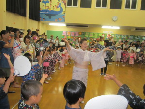今日は楽しみにしていた「七夕祭り」です。甚平や浴衣を着て登園してきた子どもたちは、とてもかわいらしかったです。