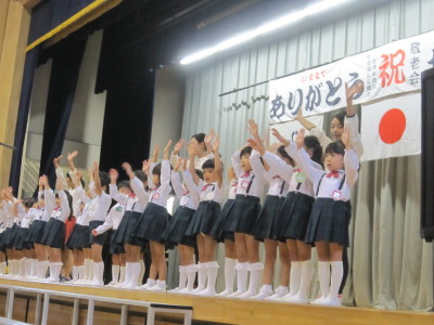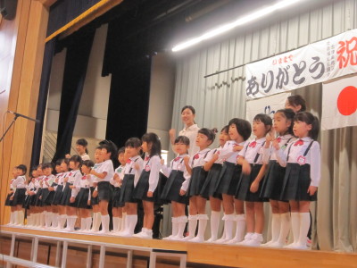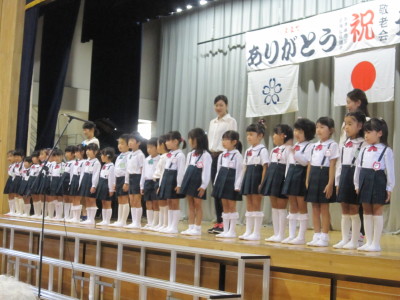 広い体育館、大きなステージに少し緊張していた子どもたちでしたが、「可愛い、可愛い」と温かく迎えていただき、たくさんのおじいちゃん、おばあちゃんの前で元気いっぱい歌うことができました。