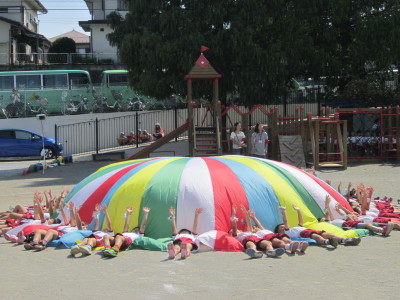 天候にも恵まれ、朝から元気いっぱいで登園してきた子どもたちでしたが、お手伝いボランティアの保護者の方が