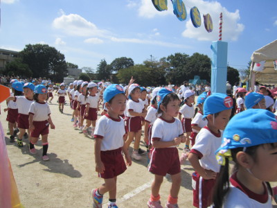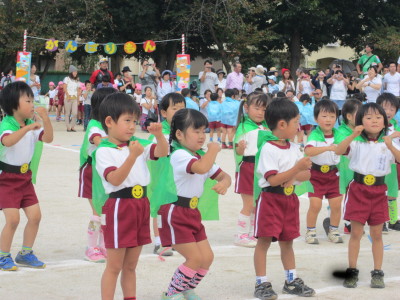 年少さんは初めてのうんどうかいでした。かけっこやサンサンたいそうに元気いっぱい参加し、子どもたちのキラキラ輝く笑顔を披露することができました。