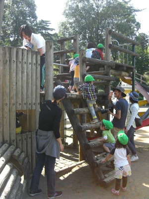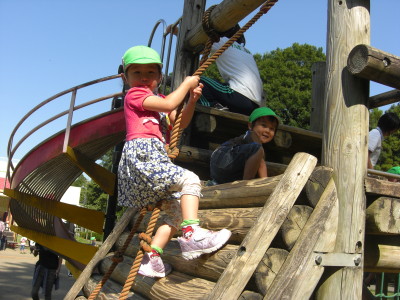 掘った後は、みんなでお弁当を食べ、アスレチックで遊びました。あっという間でしたが、おひさまくらぶのお友達と、おうちの人の笑顔がいっぱいの1日でした。