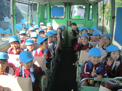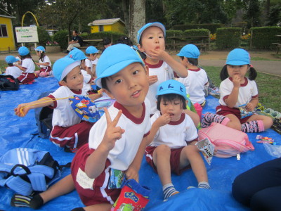 秋晴れの良いお天気のなか、つくし2組、すみれ2組、たんぽぽ2組、すずらん2組の年少4クラスで