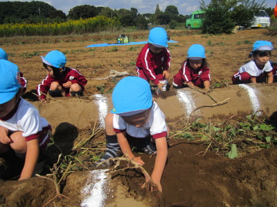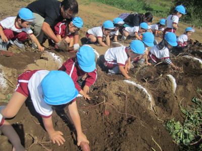 畑の土はちょっぴり固めでしたが、みんな頑張って掘っていました。大きなお芋、小さなお芋、たくさん