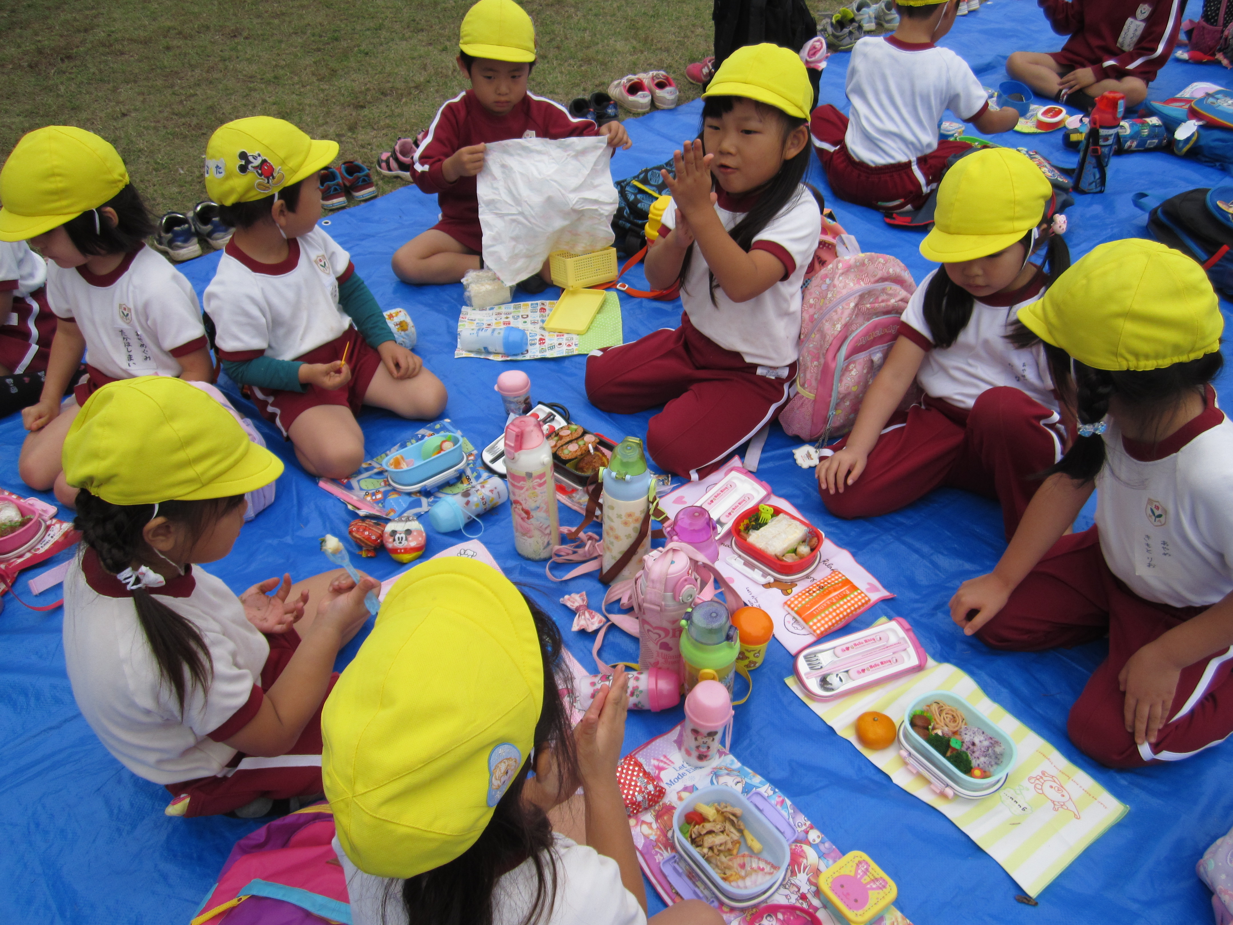 おいしいお弁当とお菓子を食べて、遊具でたくさん遊びました。一日秋の自然の中で、伸びのびと過ごすことができました。