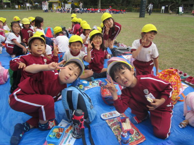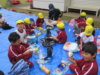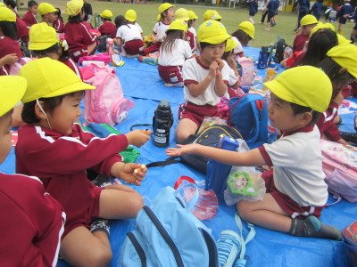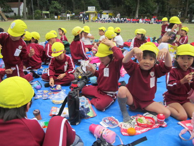 お芋を掘った後は、みんなでお弁当やおやつを食べたり、アスレチックで遊んだりして楽しく過ごしました。