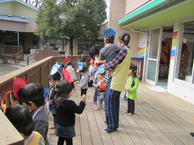 ちょっぴりドキドキした豆まき会でしたが、最後は怖い鬼とも仲良しになって、みんな笑顔になることができました。