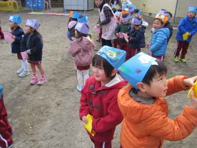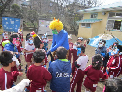 今日は2月3日『節分』です。幼稚園でも豆まき会を行いました。