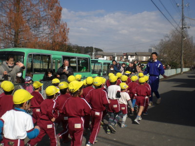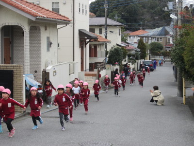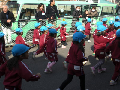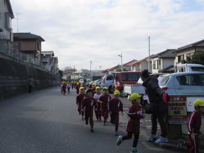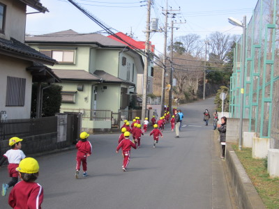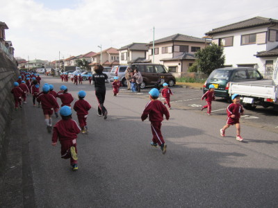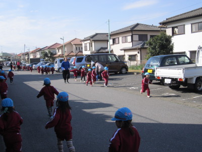 今まで頑張って練習をしてきた子どもたち。転んだらすぐ立ち上がること、車が来たらその場で足踏みをすることなどがわかるようになり、歩かないで最後まで自分の力で走ろうとする姿を見ることができました。