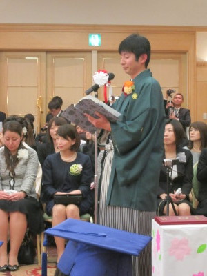 たくさんの方からお祝いの言葉をいただきました。お行儀よく座って話を聞くことができました。