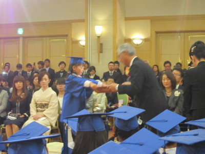 たくさんの保護者の方や来賓、職員が見守る中、園長先生からひとりずつ卒園証書を受け取っていきます。