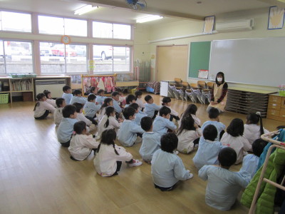かっこよく体操座りでお話を聞いている姿はたくましく、よりいっそうお兄さんお姉さんになったようでした。4月に進級してひとつ上の学年になることをしっかりと意識しているのが伝わってきます。