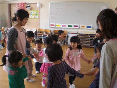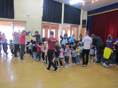 2日目の最後には、みんなでお遊戯室に集まり、じゃんけん列車のゲームをして大盛り上がりでした。