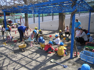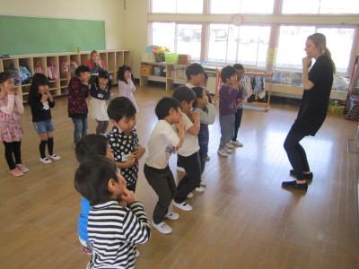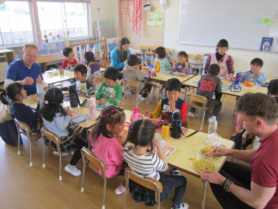 一緒にお昼を食べたり、園庭で遊んだりして英語の先生たちとたくさん触れ合うことができました。