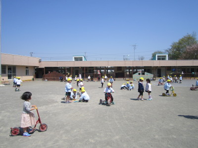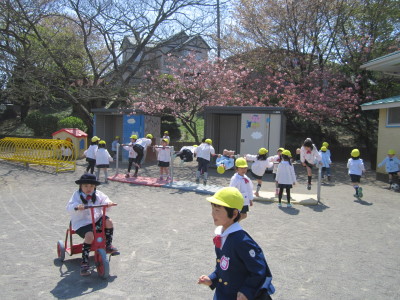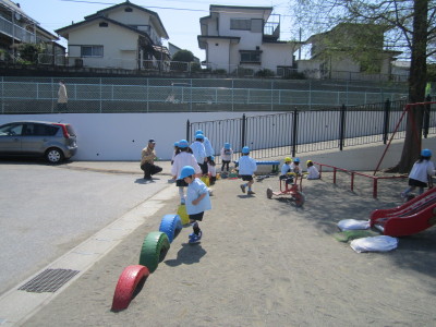 とてもいいお天気の中、元気な子どもたちが登園してきました。