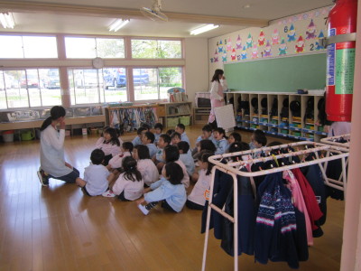 園長先生からもお話をいただき、明日からくる新入園児の年少・中さんたちに「優しくする!」と一緒に遊ぶことを楽しみにしている様子がよくわかりました。