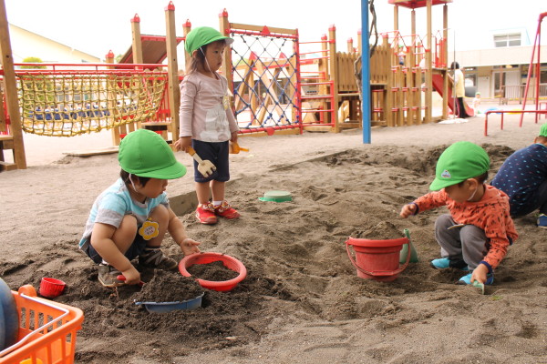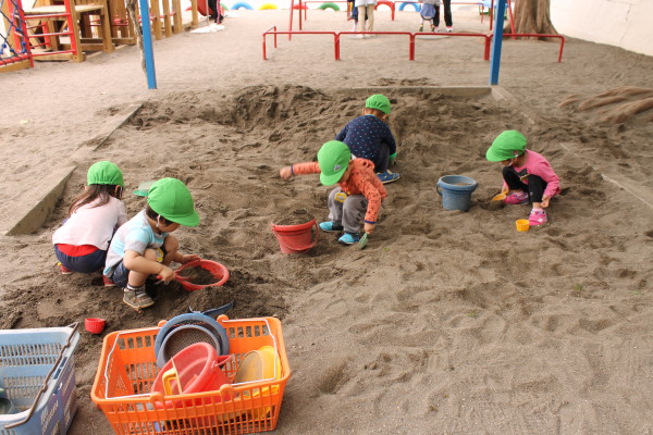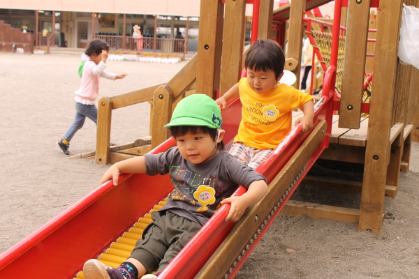 お外遊びに出ると、滑り台やブランコ、お砂場で元気いっぱい遊ぶ姿も見られました。