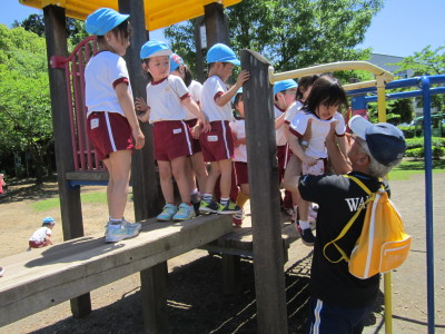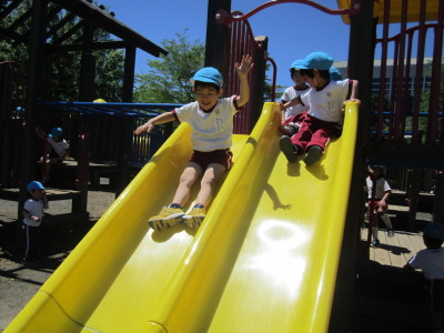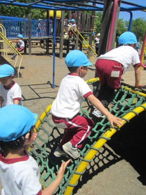 アスレチックでは、思いきり体を動かし、伸び伸びと遊んでいました。