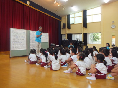 少し緊張した様子も見られましたが、お遊戯室で朝のつどいを行い、お泊り会のスタートです!