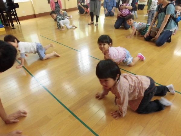 体操では、みんなが大好きな『わぁーお!』で踊ったり、仲間ゲームをしたりしました。