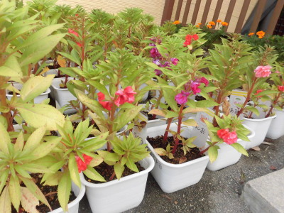 《ホウセンカ》ピンクや赤、紫のきれいな花が咲き始めました。